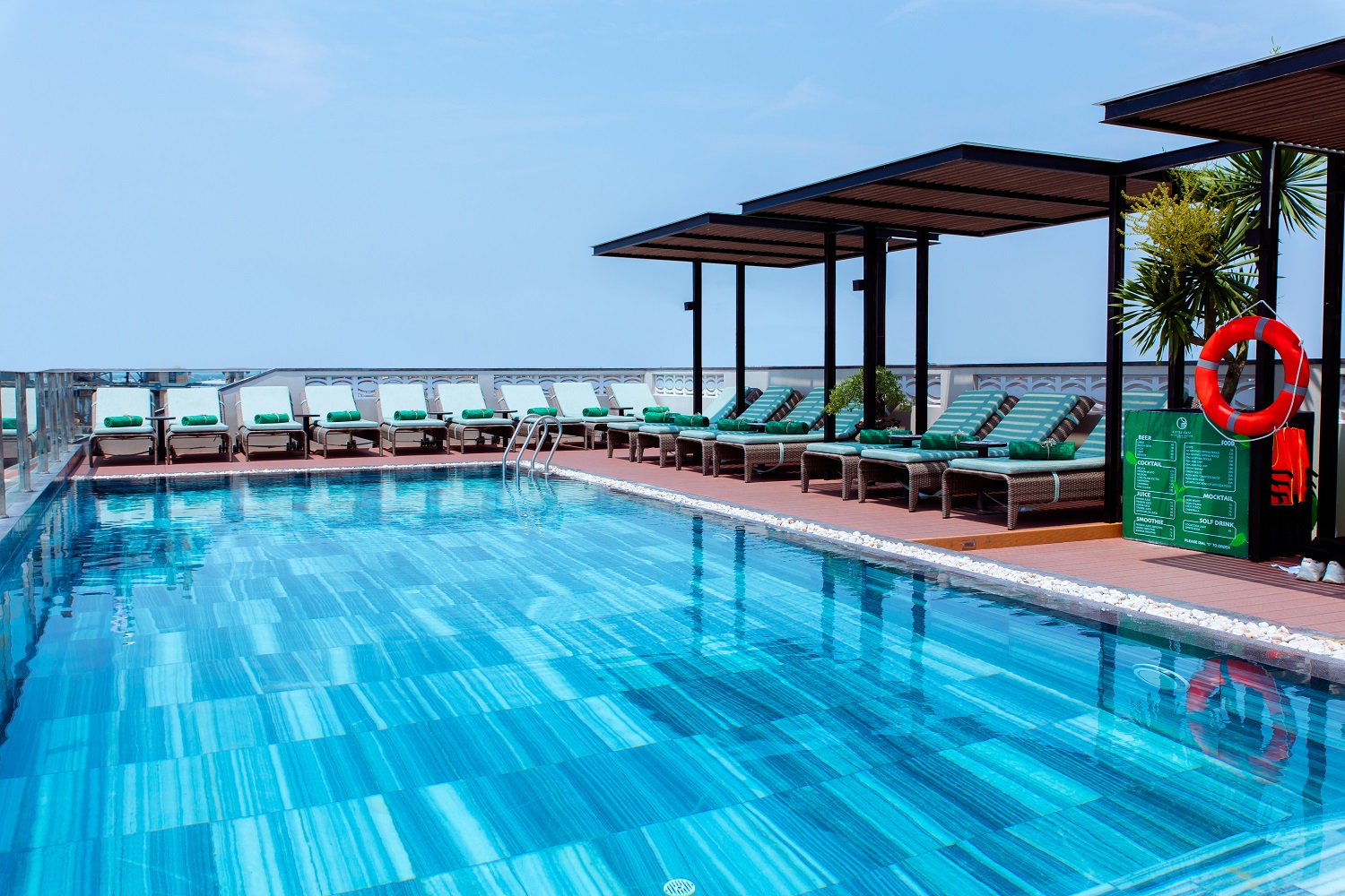 - 1 roof-top Chemical Free outdoor swimming pool with 25 sun chairs for sunbathing